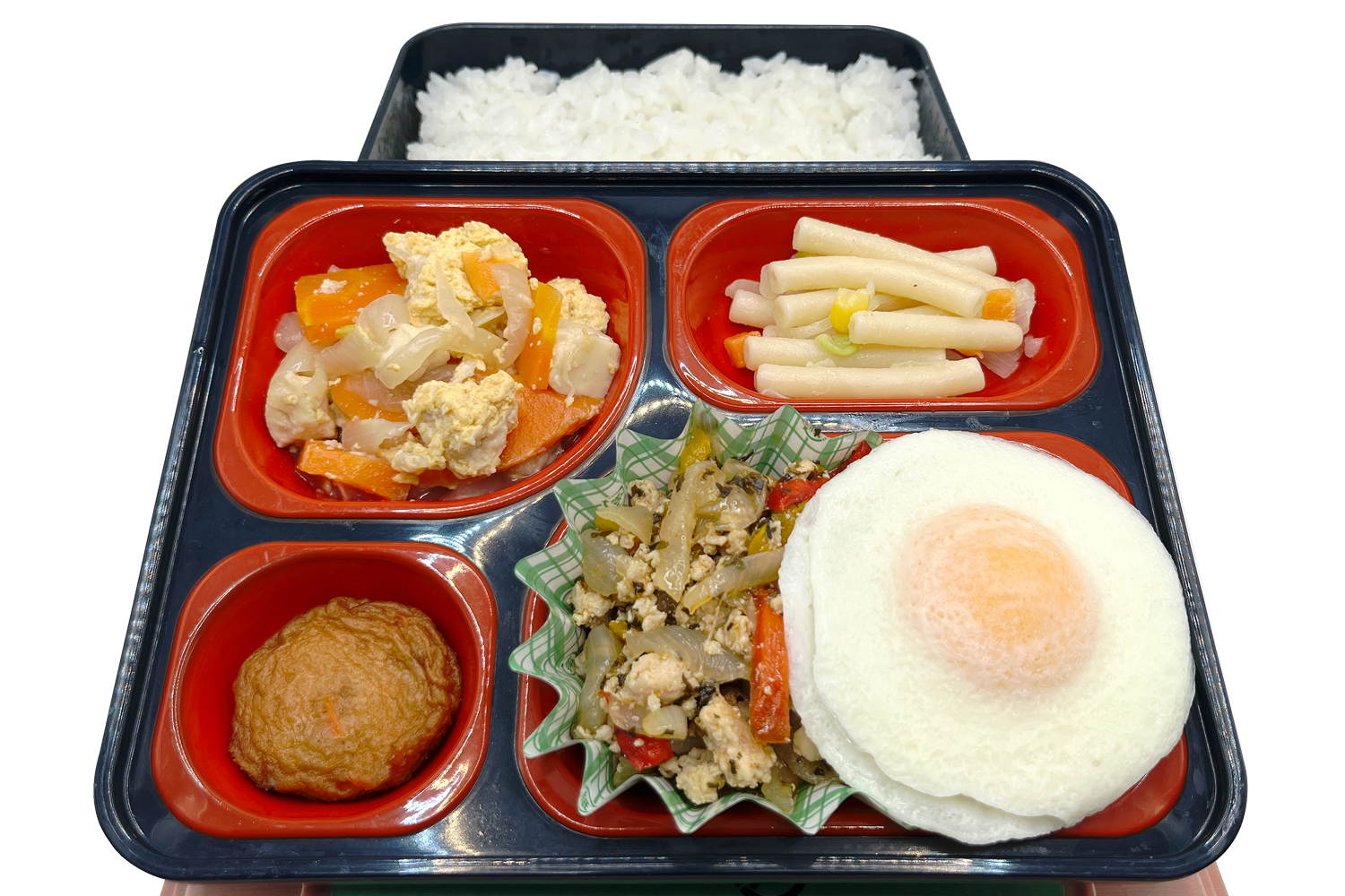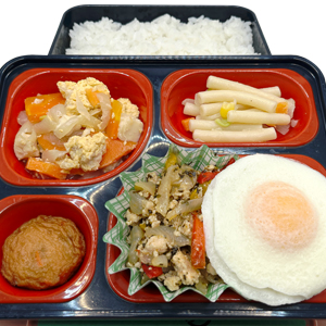11月21日のお弁当🍱 ニュース 2025.11.21 本日のお弁当はこちら! ★ビジネス弁当★ 牛肉コロッケ みそ味つくね ☆ヘルシー弁当☆ のっけてガパオ(ガパオ炒めと目玉焼き) 来週11月25日のお弁当は… ★ビジネス弁当★ロースカツ ☆ヘルシー弁当☆チーズインハンバーグのトマトソース #弁当 #ランチ #宅配弁当 #新居浜 #西条