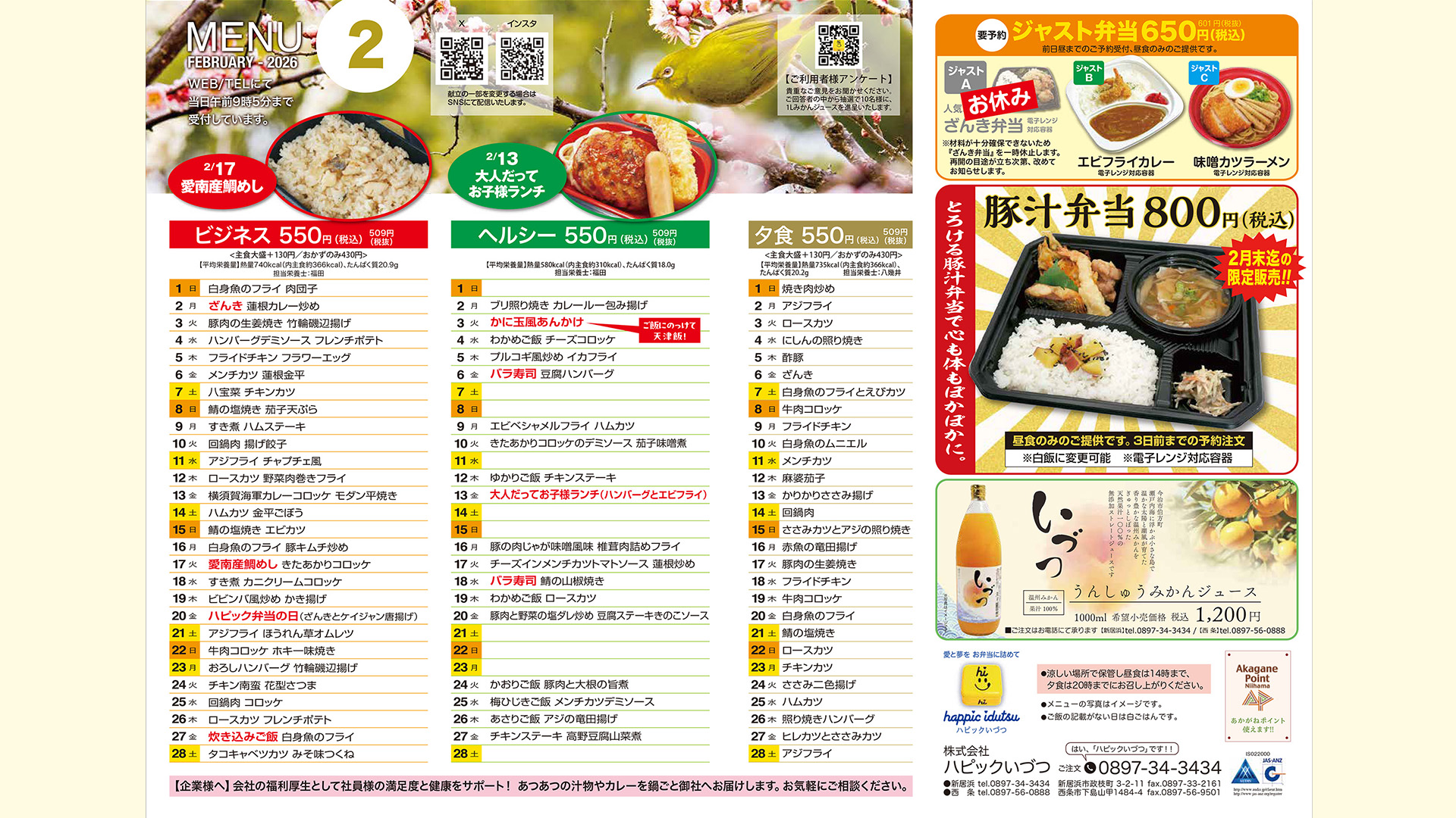 [お弁当]令和8年2月の献立表