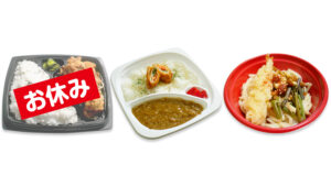 3月ジャスト弁当-2026年 - A ざんぎ弁当(休止) 650円(税込) B チキンロールフライカレー 650円(税込) C 山菜えび天うどん 650円(税込) ※材料が十分確保できないため『ジャストA:ざんき弁当』を一時休止します…